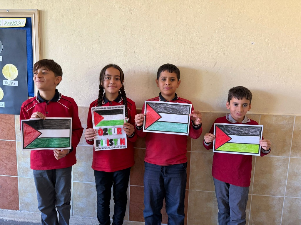 Okulumuzda öğretmenlerinin rehberliğinde öğrencilerimiz Filistin'e destek olmak ve bu konuda farkındalık kazandırabilmek amaçlı güzel bir etkinlik düzenlemişlerdir. Emeği geçen öğretmenlerimize ve öğrencilerimize teşekkür ederiz.